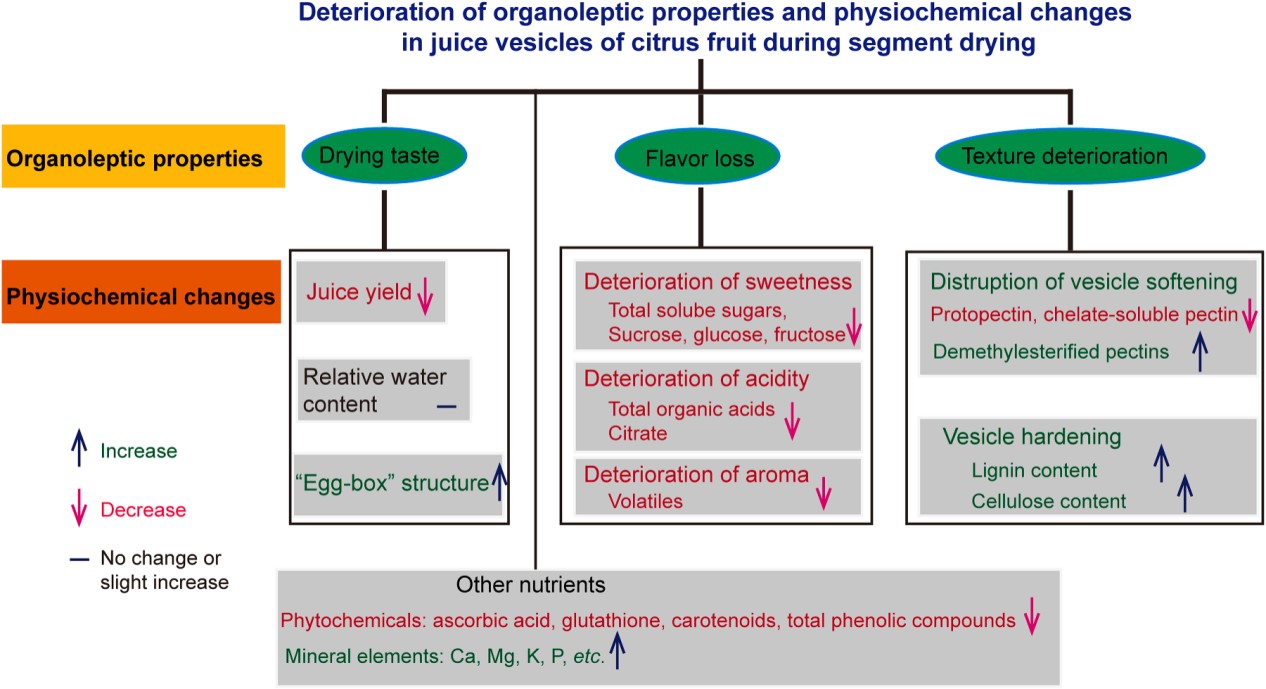 Huang, C., Hou, J., Huang, M., Hu, M., Deng, L., Zeng, K., Yao, S. 2023. A comprehensive review of segment drying (vesicle granulation and collapse) in citrus fruit: Current state and future directions. Scientia Horticulturae, 309, 111683.