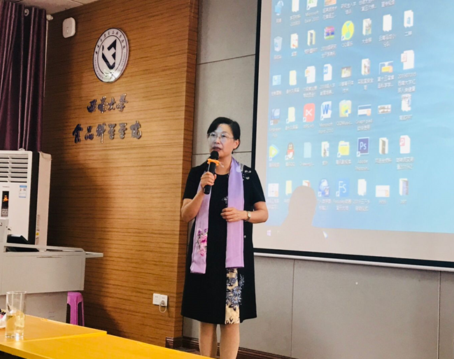 屠幼英教授以“红茶的健康功能与研究”为题,汇报了团队对红茶中活性成分茶黄素的抗癌抗炎研究进展。除了科研专业知识方面的汇报,屠老师也生动地讲授了一些科普知识,例如如何晚上饮茶不影响睡眠,做一杯风味极佳的柠檬红茶等生活知识,引起师生们的极大兴趣。