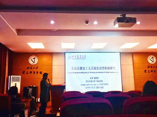 2019年1月7日,四川农业大学的张清副教授应邀在公司39教215报告厅作题为“全豆豆腐加工及其凝胶成型机制研究”的专题报告。本次报告由人生就是博ag(中国区)·公司官网副经理张宇昊教授主持,公司百余名师生参会。