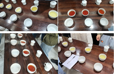 人生就是博ag(中国区)·公司官网茶学系专家评审团主要由丁阳平老师、孙康老师、罗理勇老师、袁连玉老师、岳川老师、陈应娟老师组成。在审评过程中,同学们积极探究做茶工艺对成品茶质的影响。例如,他们研究了摇青次数、时间以及方式对乌龙茶香气的影响,发酵温度对红茶品质的影响,揉捻时间对叶底干茶的影响,杀青温度对绿茶香气的影响等专业问题。专家老师们凭借专业知识对这些问题进行了解答,同学们从中获益匪浅。此外,老师们通过审评同学们做的茶,发现同学们存在的问题,并提出改进措施。