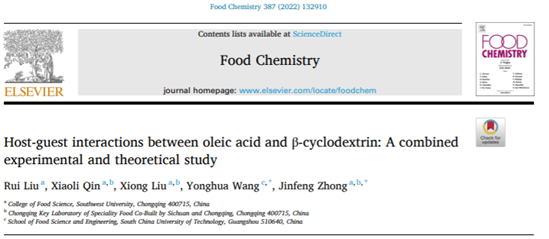 2022年4月6日,公司2019级“百超”创新实验班本科生刘瑞在Food Chemistry发表了题为“Host-guest interactions between oleic acid and β-cyclodextrin: A combined experimental and theoretical study”的研究论文。该文指导教师、通讯作者为钟金锋副教授。全文链接:https://doi.org/10.1016/j.foodchem.2022.132910