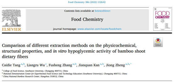 2022年3月26日,公司2019级“百超”创新实验班本科生汤彩碟作为第一作者在Food Chemistry(Q1, IF:7.514)发表题为“Comparison of different extraction methods on the physicochemical, structural properties, and in vitro hypoglycemic activity of bamboo shoot dietary fibers”的研究论文。该文指导教师、通讯作者为郑炯副教授。全文链接:https://doi.org/10.1016/j.foodchem.2022.132642