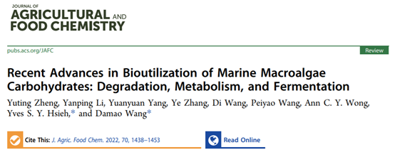 2022年1月28日,公司2019级“百超”创新实验班本科生郑雨婷作为第一作者在Journal of Agricultural and Food Chemistry(Q1, IF:5.40)发表题为“Recent Advances in Bioutilization of Marine Macroalgae Carbohydrates: Degradation, Metabolism, and Fermentation”的综述论文。该文指导教师、通讯作者为王大毛教授。全文链接:https://doi.org/10.1021/acs.jafc.1c07267