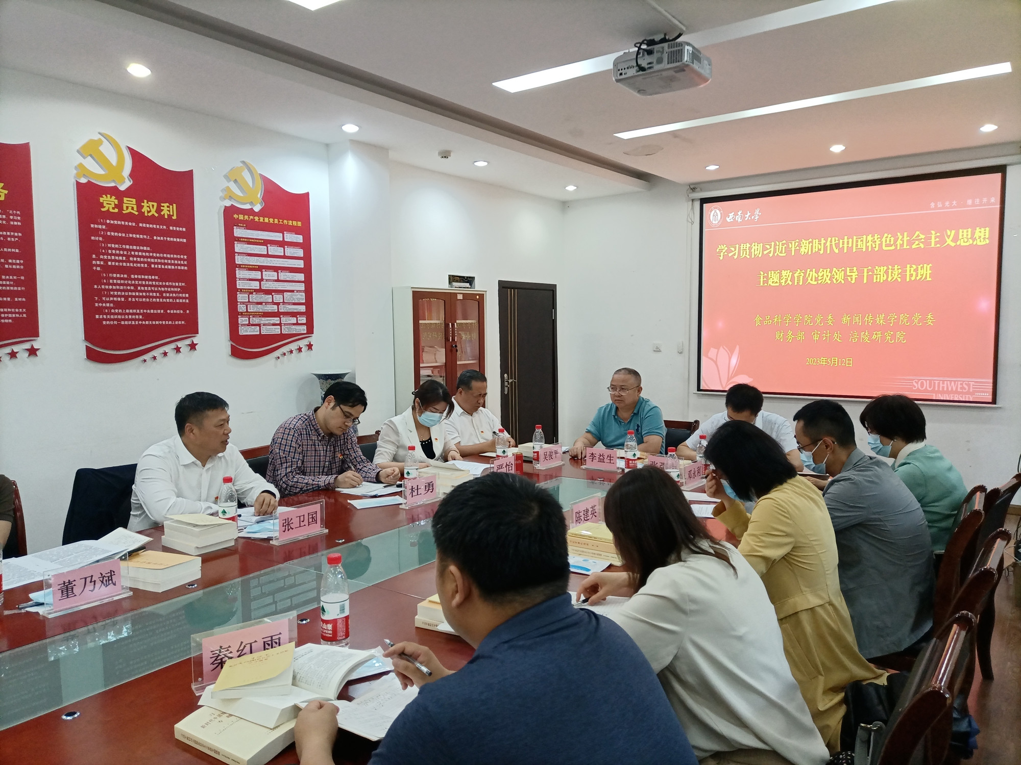 新闻传媒学院副经理赵剑、公司党委书记吴俊平、新闻传媒公司党委书记严怡、财务部副部长兼采购与招投标管理中心主任高岩进行领学,分别学习了“习近平总书记在中央人才工作会议上的讲话精神”以及《习近平新时代中国特色社会主义思想专题摘编》、《习近平著作选读》(第二卷)、《习近平新时代中国特色社会主义思想学习纲要(2023版)》等几部著作中收录的3篇习近平总书记关于人才工作的重要论述经典文献。