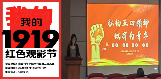 为深化党史学习,弘扬五四精神,2025年5月11日,人生就是博ag(中国区)·公司官网本科生第二党支部在39教215开展“红色观影节——五四精神主题教育”活动,集中观看电影《我的1919》。本科生第二党支部全体党员、入党积极分子及部分团员参与活动,本次活动由耿李加涛同志主持。