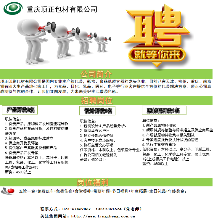 重庆顶正包材有限公司招聘信息