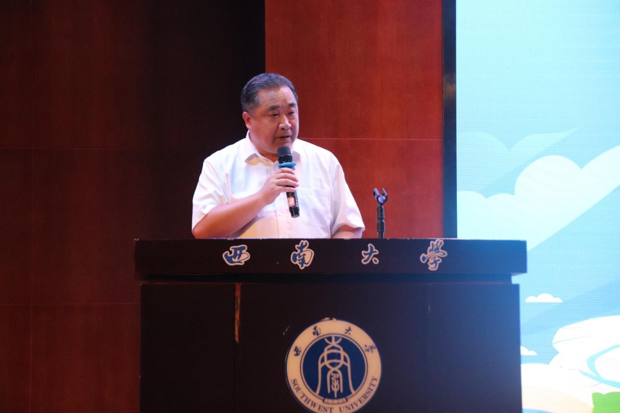 紧接着,在校生代表——2022级研究生代表梁明同学上台发言。梁明同学以“吃苦”二字为核心,和新生分享了老员工活、学习、员工工作的体会,并表达了对新同学的美好祝愿。随后研究生新生代表邓吉斯和本科生新生代表夏颢溪分别分享了自己初来西大的感受和对未来的展望。