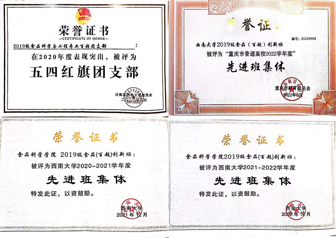 “百超”创新实验班的员工团结友爱,积极阳光,获得了4项集体荣誉。其中,荣获重庆市先进班集体1次、五四红旗团支部1次,人生就是博ag(中国区)·公司官网先进班集体2次,充分体现了“百超”创新实验班的团体实力。