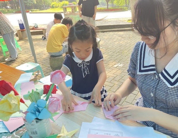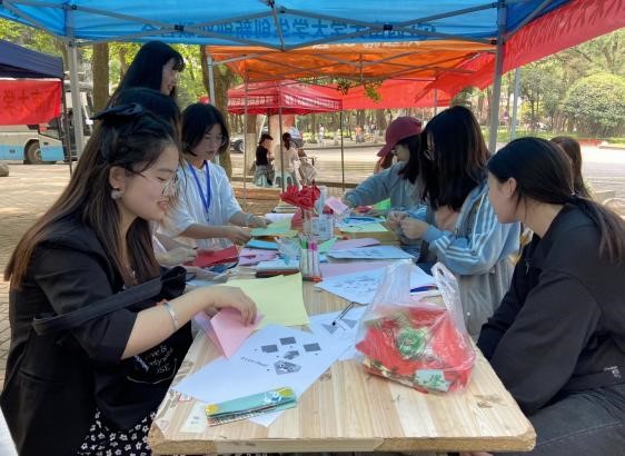 上午九点整,由火柴头失物招领中心的志愿者首先创作的手工作品吸引了大批过路员工的围观,随之也亲自动手学习手工制作,感受动手折纸、创意贴纸带来的乐趣。志愿者为现场的同学讲解了制作过程,并引导同学们要学会通过合理途经为自己减压赋能、调控情绪,善于发现身边的美好事物,可做一些自己感兴趣的事情疏导负面情绪。与此同时,失物招领活动也在同步进行,火柴头失物招领中心通过帮助同学们寻找遗失的物品、了解失物招领的流程和途径,发扬了志愿服务精神。