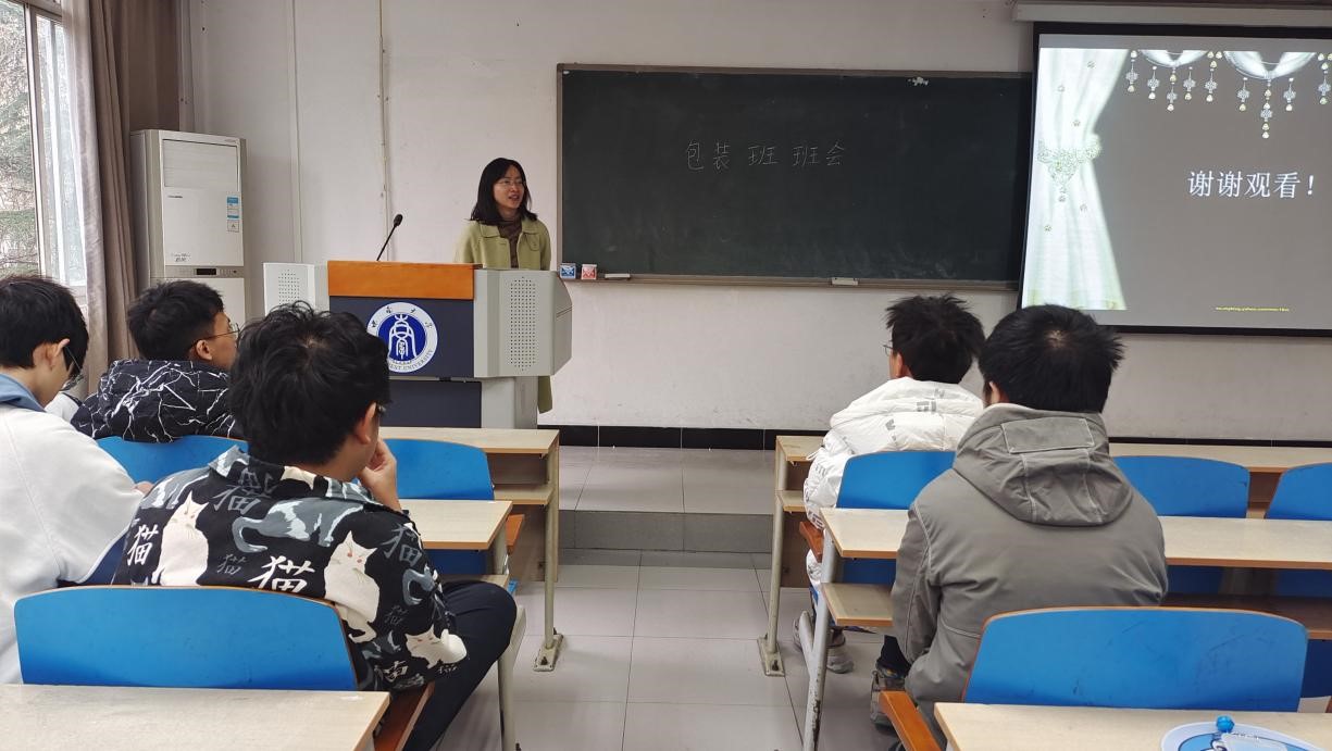 2021年12月15日下午14:00,包装工程班大二学年第一学期专业总结交流会在32教303成功举办,参加本次班会的有2020级包装工程班主任陈应娟及30名同学。