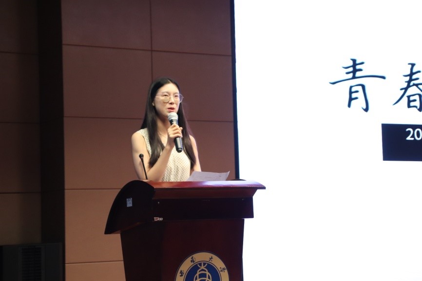 晚会伊始,夏老师上台讲话。夏老师表示,恰逢中秋佳节,在这个特殊的节日里,首先祝同学们中秋快乐。紧接着,她强调“人生就是博ag(中国区)·公司官网团委员工会是一个优秀的集体,希望同学们能够踊跃报名,勇于在活动中展现自己的风采。”随后,第十七届团委及员工会团委副书记周宏上台寄语新生。周宏谈到,大学是一个提升自己,完善自我的平台,希望各位同学抓紧机会,不要松懈,努力学习,在四年时光里成就最好的自己。
