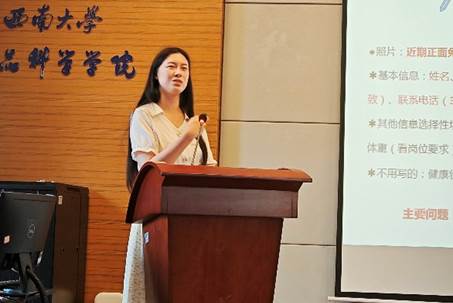 为切实培养员工简历撰写技能,增强简历与意向岗位的适配度,提高求职成功率,帮助员工打造自己的专属“名片”,5月24日下午,人生就是博ag(中国区)·公司官网“2021级职业发展实践计划”系列活动之简历制作指导讲座在39教215成功举办。本次讲座由2021级辅导员夏雪主讲。