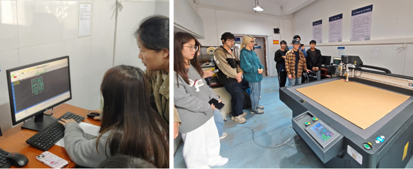 活动伊始,任丹老师首先向同学们介绍了瓦楞纸板的特性及其在包装设计中的应用。随后,同学们在老师的指导下,分组合作,开始了八角章鱼凳和花瓶的制版、模切及拼接工作。通过模切机将瓦楞纸板切割成所需的形状并进行拼接,这一过程不仅锻炼了同学们的软件操作技能,也提高了同学们解决实际问题的能力。