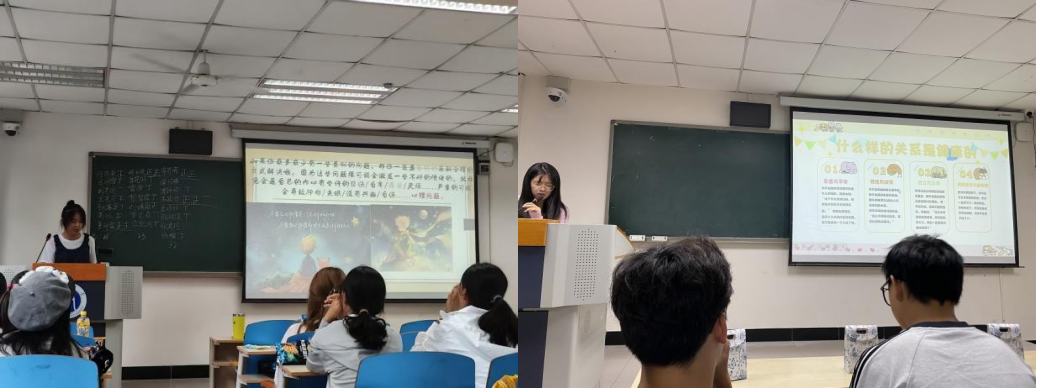活动由心理健康教育拉开帷幕。其中,4班围绕知识科普及心理关怀两方面引导同学们关注常见心理适应问题。8班依次从人际交往、自我意识、情绪管理、亲密关系四个方面展开心理健康知识讲解。本次教育内容丰富,形式新颖,全方位系统性地为刚步入大学的同学们提供了心理调适方法,为新的老员工活奠定了坚实心理基础。