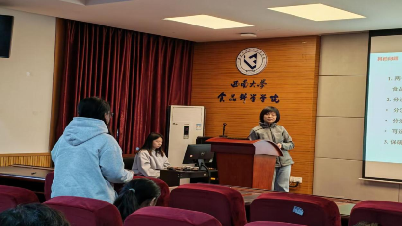 茶话会伊始,邓丽莉老师紧扣食品专业本科人才培养方案,对人才培养目标、课程模块等核心内容进行细致解读,清晰界定通识课、专业基础课与专业选修课的区别,为同学们搭建起专业学习的整体框架。