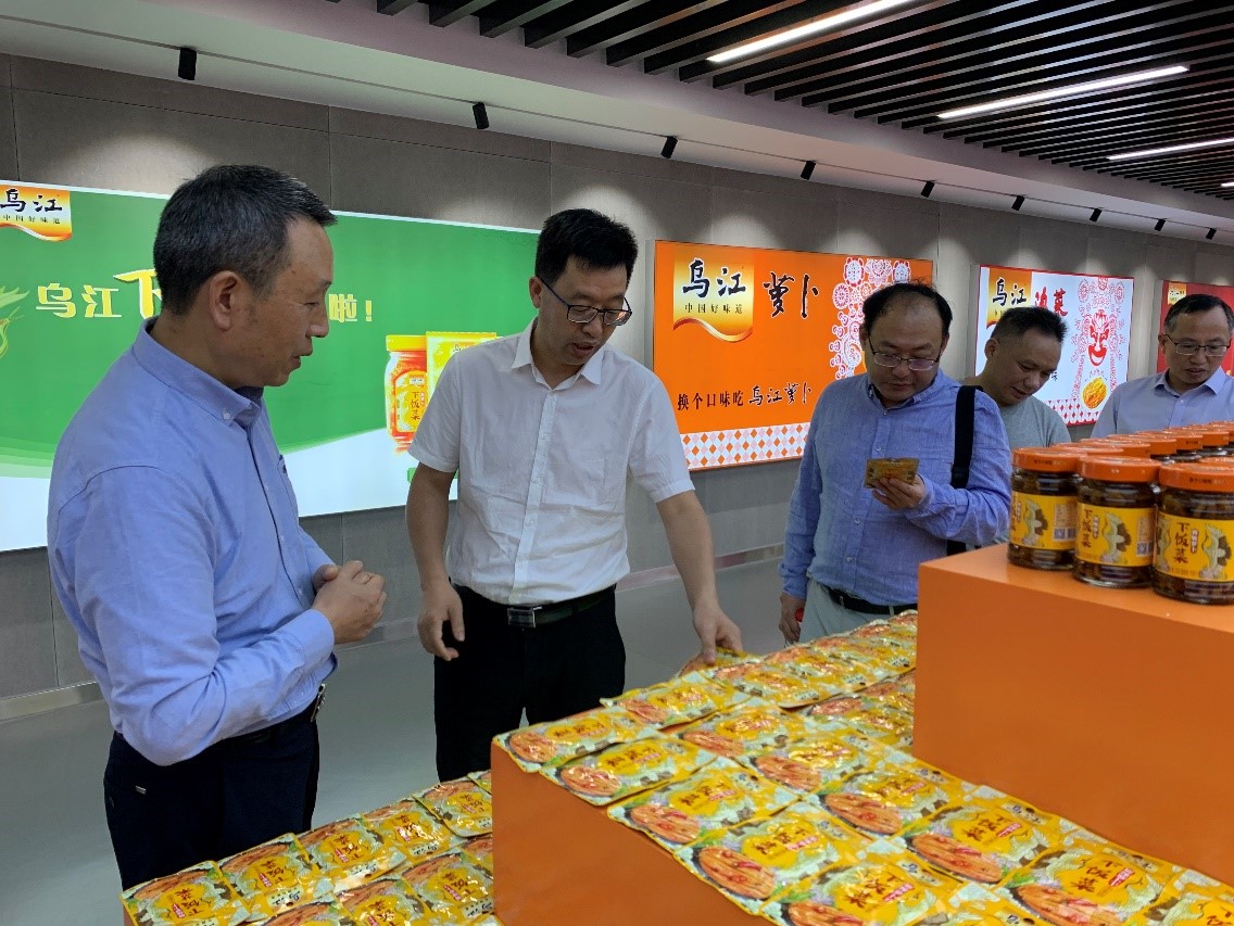赵国华副董事长一行先后参观了涪陵榨菜历史文化陈列馆、涪陵榨菜集团发展脉络展厅,考察了乌江榨菜智能化生产车间,参加了交流座谈会。会上,赵董事长表示学校与涪陵区有良好的合作基础,同时就校企共建创新创业基地的合作予以充分的肯定。他希望以本次交流为契机,继续深化合作,充分发挥公司食品专业及其他专业优势,拓宽就业渠道,建立长效机制。涪陵榨菜集团赵云总经理在交流中表示,企业当下面临人才制约、产品创新开发等问题,希望加强与公司的人才合作计划,搭建线上线下校招平台,大力支持学校毕业生就业工作,同时也为集团新科技、新产品注入强劲动力。