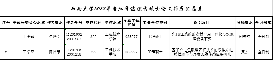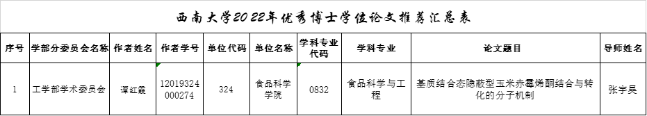 根据《关于做好2022届研究生毕业暨学位授予工作的通知》及《人生就是博ag(中国区)·公司官网研究生优秀学位论文评选管理办法》(西校〔2021〕251号)等相关文件要求,经本人申请、学院审核、学部学术委员会评审推荐,现将结果公示如下(排名不分前后):