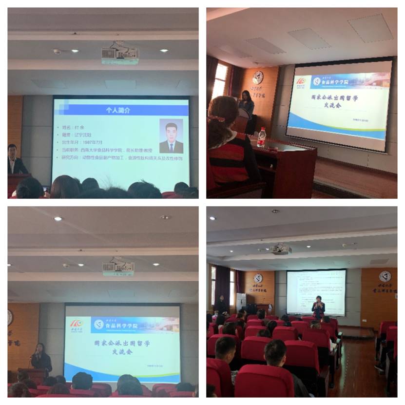 交流会期间,经理助理付余老师和大家分享了自己申请国家公派留学项目和在丹麦留学的感受,研究生教学秘书陈璐老师向同学们讲解了在校申请需要做的准备,18级食品研究生肖丽师姐向大家讲述了自己申请公派留学项目的经历。大会最后,由研究生院培养办公派负责人张远英老师指导,为同学解答了对国家公派留学项目申请中存在的疑惑。