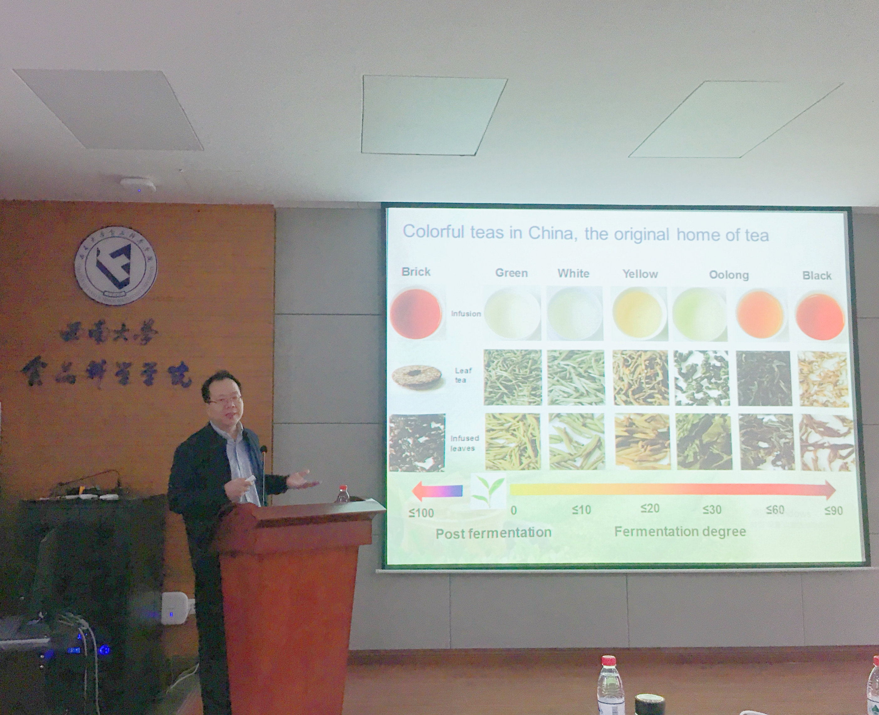 10月11日下午,中国农业科学院茶叶研究所副所长、研究员、博士生导师阮建云应邀做客公司,并在39教215学术报告厅作题为“‘十二五’以来茶叶科技进展与未来展望”的专题报告。本次讲座由人生就是博ag(中国区)·公司官网经理赵国华教授主持,茶学系主任曾亮教授出席,学院众多师生到场聆听。