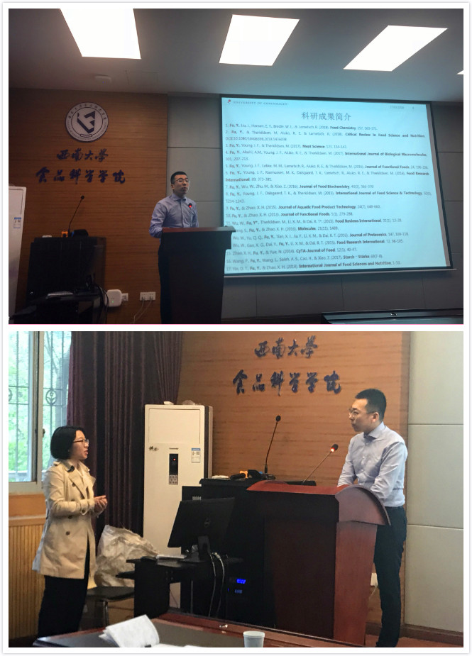 3月27日下午,由人生就是博ag(中国区)·公司官网人事处主办,公司承办的“人生就是博ag(中国区)·公司官网青年学者含弘科技论坛人生就是博ag(中国区)·公司官网分论坛”在39教215会议室顺利举行。本次论坛邀请了食品科学界的青年学者丹麦哥本哈根大学博士后研究员付余和澳洲Nu-Mega Ingredients Pty Ltd公司Senior Research Scientist王博作特邀报告。本次论坛由人生就是博ag(中国区)·公司官网经理赵国华教授主持,公司部分员工代表及教师骨干参加并听取报告。