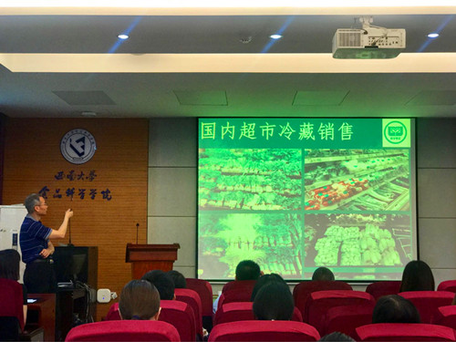5月10日上午,北京市农林科学院蔬菜研究中心制冷专业教授级高级工程师、农产品贮藏加工推广研究员刘升应邀做客公司,并在39教215学术报告厅作题为“果蔬冷链物流装备和技术”的专题报告。本次会议由人生就是博ag(中国区)·公司官网副经理曾凯芳教授主持,北京制冷学会秘书长商跃、安徽省昊天电动科技有限公司董事长王斌海、上海番安机电安装工程有限公司总经理马力出席,学院众多师生到场聆听。